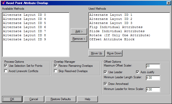 Use Selection Set for Points: Check this checkbox to be given the option of selecting which points in drawing to fix overlaps with. If not checked, then all the points in the drawing are used.