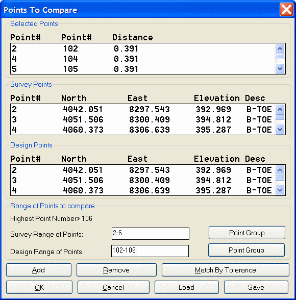 Example 3: Steps for Comparing Points in Current Coordinate file and using Report Formatter Option to customize report output to user preference.