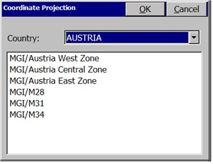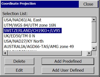 You may create and select from a list of frequently used or previously selected coordinate systems. Click Edit Projection List to add to the list and to create user-defined projections.