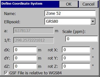 NTF-GR3DF97A: This system is a grid transformation that requires the files “Predef1.csl” and “gr3df97a.bin” to be in the SurvStar directory on the data collector. The “Predef1.csl” file is part of the default installation. You will need to use Data Transfer to copy the “gr3df97a.bin” file from your CD to your data collector.