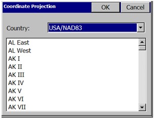 UTM: The ellipsoid used in the Universal Transverse Mercator calculation is determined by the Datum selection. If you choose the option, “WGS 84/Automatic Zone Selection”, the zone is determined by the lat/lon values read in from the receiver. If you know your UTM zone, you can also select it. Whenever SurvCE does a reverse calculation (from UTM to WGS84) you will be prompted to enter a zone number.