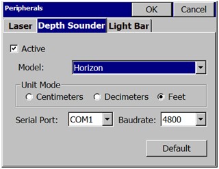 - Enter the Peripherals menu, and select the Depth Sounder tab, as shown above.