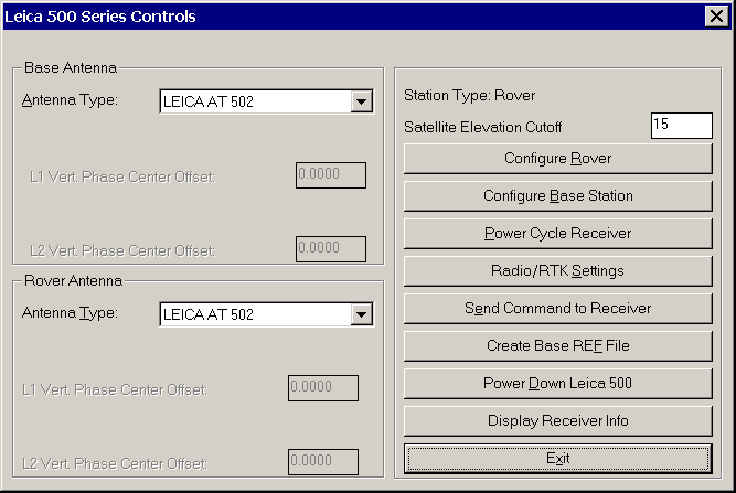 Send Command to Receiver allows experienced users to type in Leica commands or send a file to set or report internal settings. (See the Leica operations manuals for a complete list of Leica GPS receiver commands.)